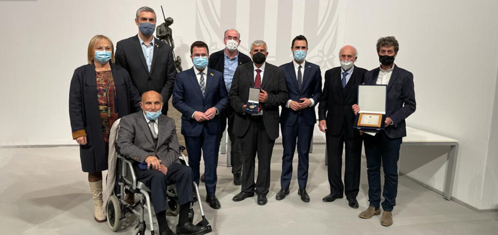 Ferran i Miquel Alemany recullen la placa de la mà del M. H President Pere Aragonés. FOTO: Canal Govern.