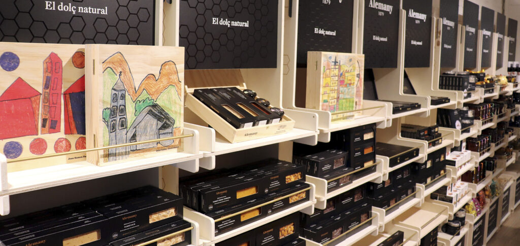 L’espai té 25 metres quadrats i s’hi pot adquirir tota la gamma dels nostres productes Alemany. Hi podeu comprar torrons, mels, caramels, fruits secs, agredolços i vinagre amb mel, Olimel, així com les noves caixes d'Art i Torró Alemany d'aquest Nadal il·lustrades pels artistes d’Ilersis Shalom, Aspros, La Torxa i l’Estel.