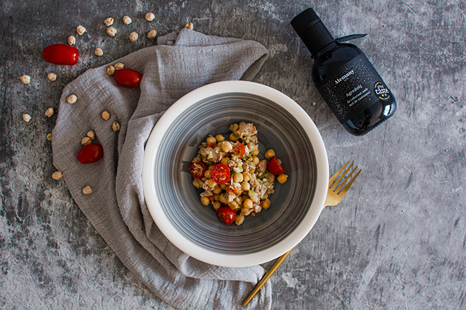 4. Ho salpebrem al gust, hi afegim l’OOVE i ho reguem amb l’agredolç de cabernet amb mel de castanyer Alemany.