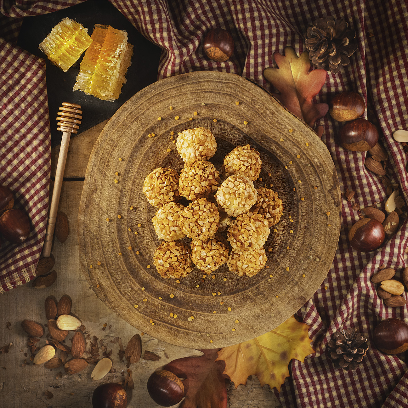 1. En un bol barregem la farina d'ametlla, la patata bullida i pelada, el sucre i la Mel amb Gelea Reial Alemany amb molta energia, fins aconseguir una massa homogènia. Deixem reposar una hora la massa o 'massapà' tapada amb un drap de cuina.