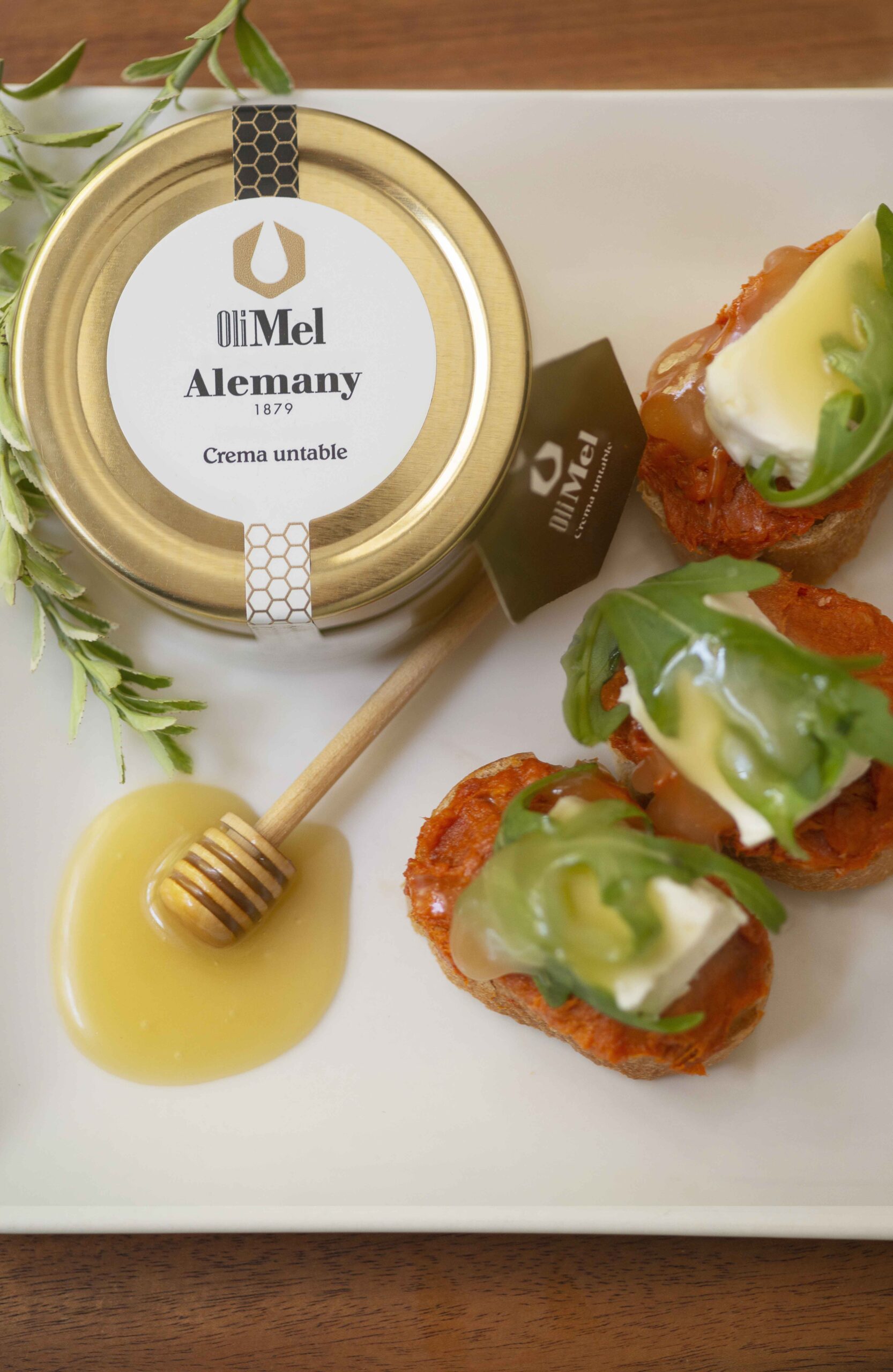 4. Guarnim les torrades amb fulles de ruca i les reguem amb l’OliMel Alemany.